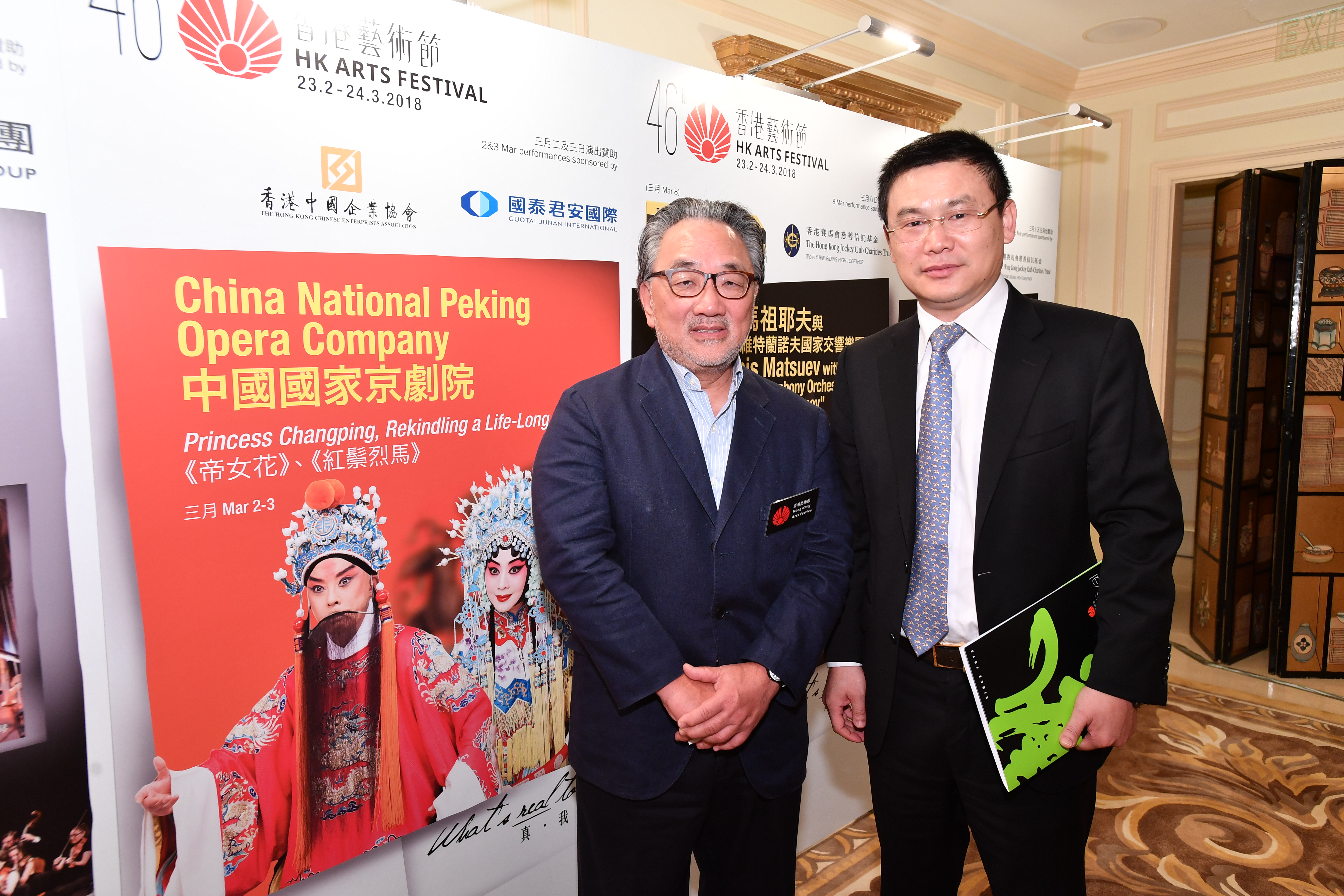 Mr. Victor Cha, Chairman of the Hong Kong Arts Festival Society (left) pictured with Dr Yim Fung, Chairman & CEO of Guotai Junan International Holdings Limited (right) during the Kick-off Press Conference of the 46th Hong Kong Arts Festival