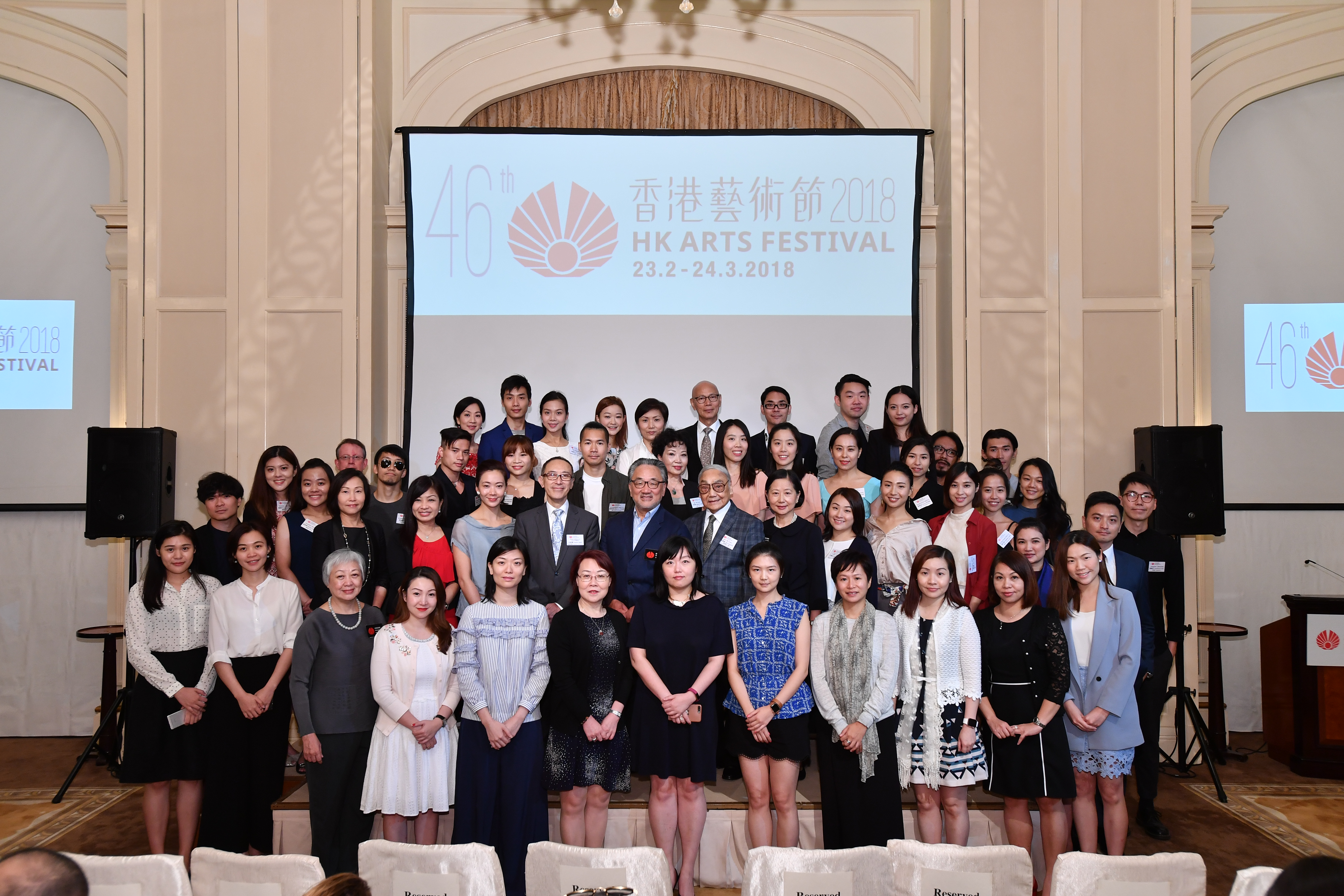 Chairman of the Hong Kong Arts Festival Society is pictured here with artists and representatives of Sponsors of the 46th Hong Kong Arts Festival