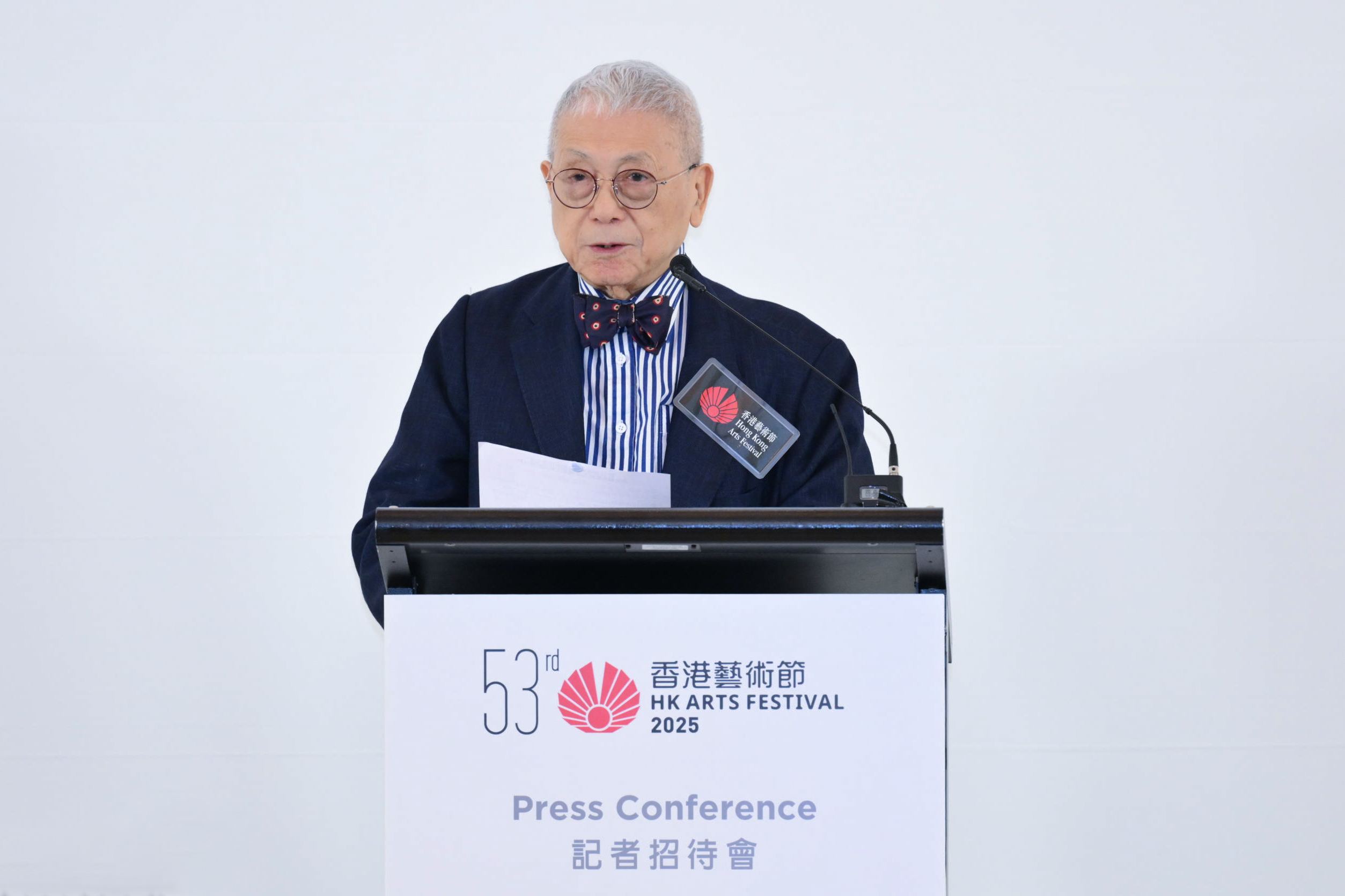 Prof. Kingman Lo, SBS MBE JP, Vice Chairman of the Hong Kong Arts Festival Society, giving a speech at the Press Conference of the 53rd Hong Kong Arts Festival.