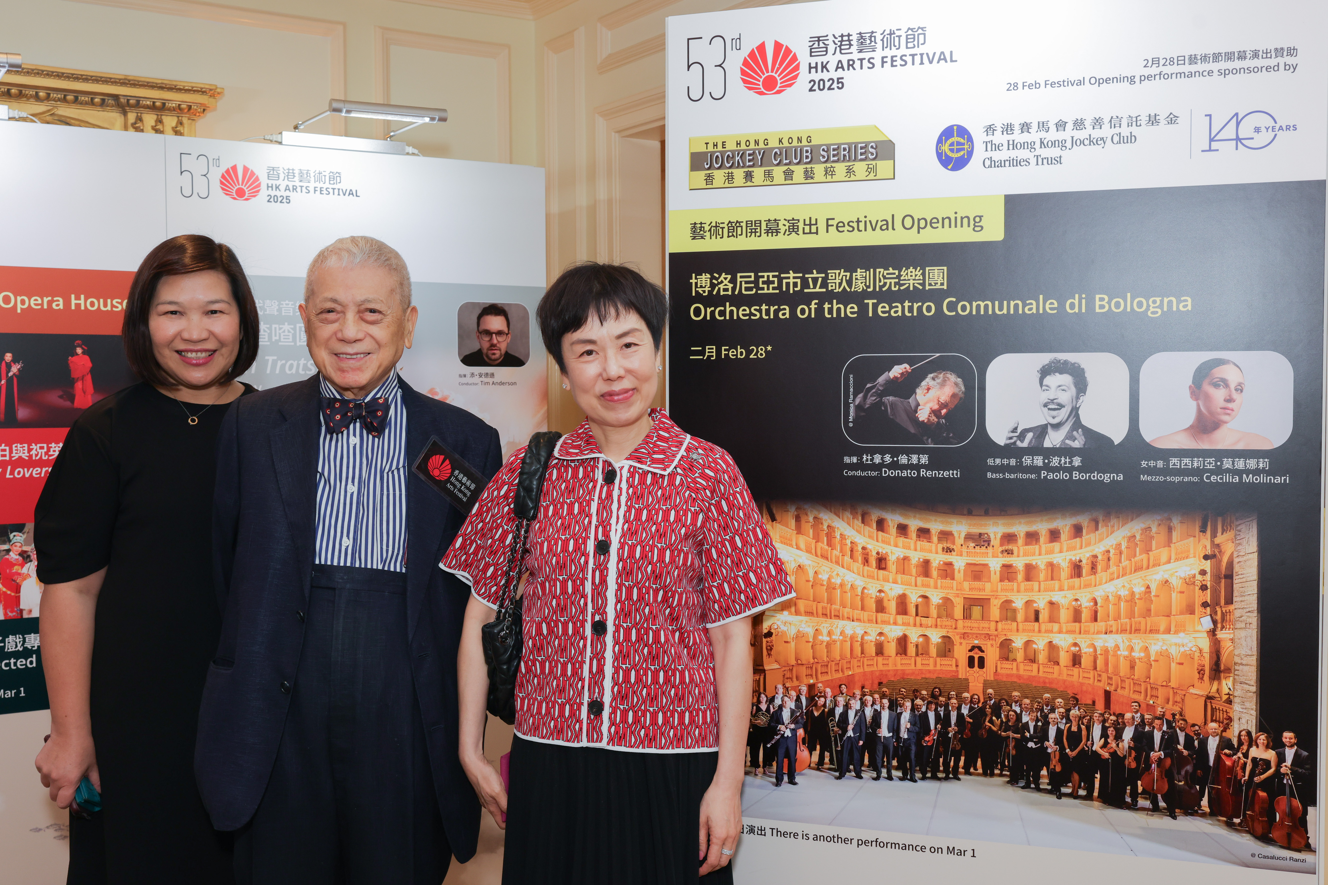 Prof. Kingman Lo, SBS MBE JP, Vice Chairman of the Hong Kong Arts Festival Society (middle) and Ms. Flora Yu, Executive Director of the Hong Kong Arts Festival Society (left) pictured with Ms. Winnie Yip, Head of Charities (Culture, Sports and Community Engagement) of The Hong Kong Jockey Club (right).