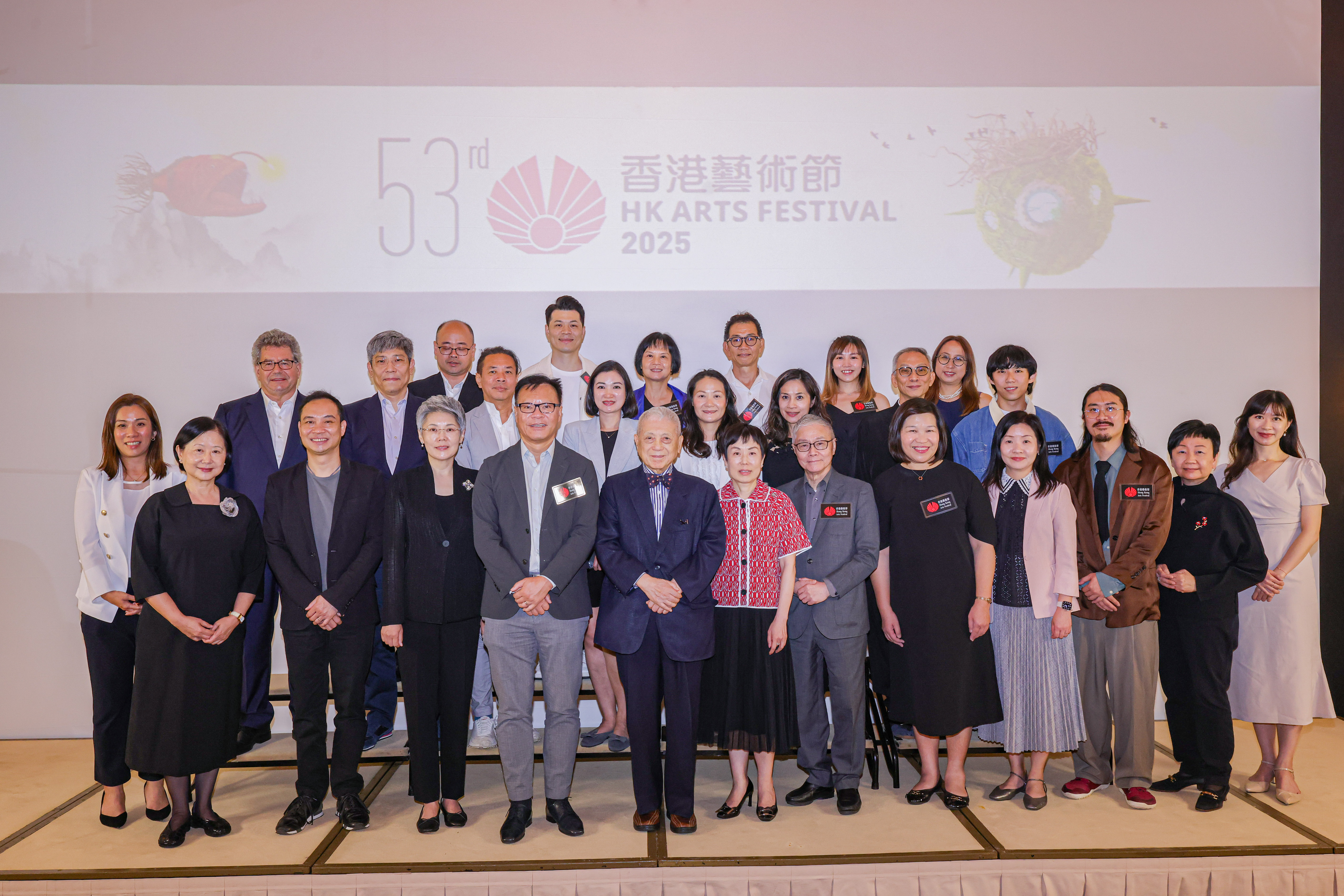 The Management of the Hong Kong Arts Festival Society pictured here with the artists and representatives of the sponsors of the 53rd Hong Kong Arts Festival.