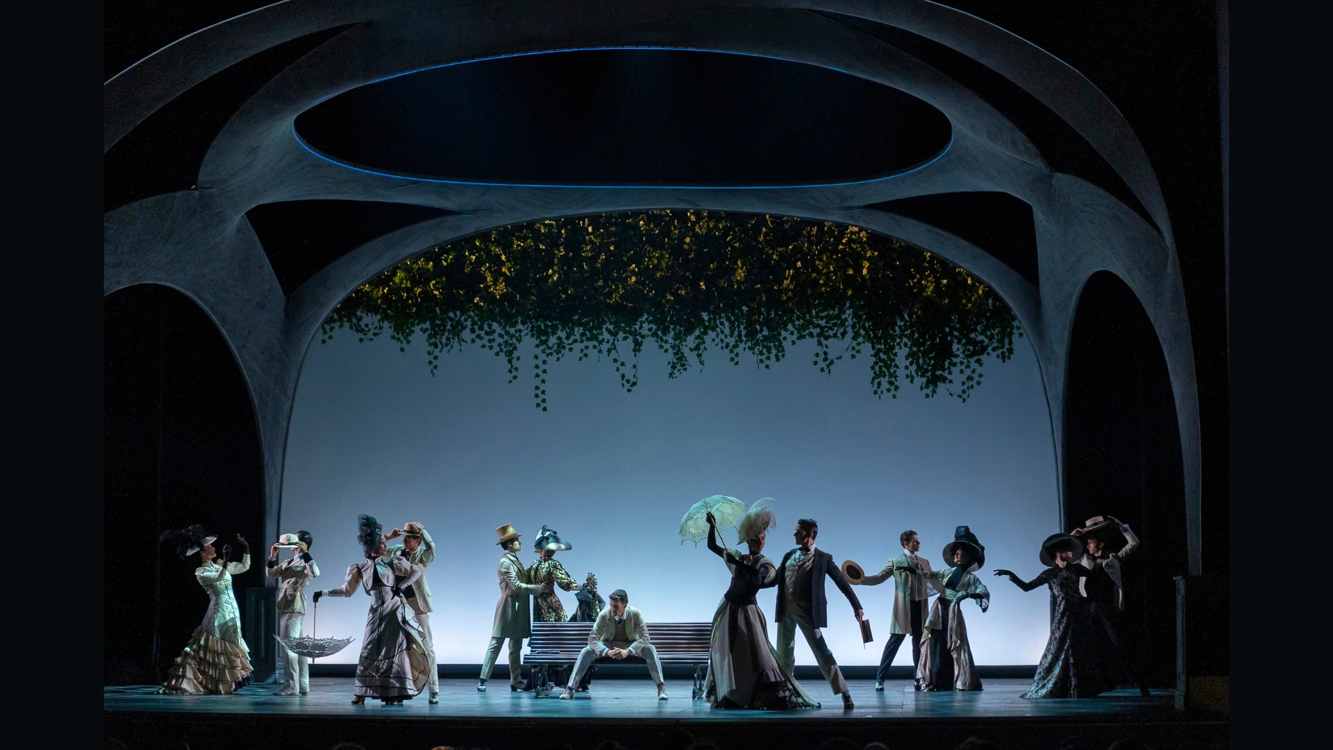 La Bella Otero meticulously recreates the Belle Époque of late 19th-century Europe in both set and costume design, with a flexible stage and scene changes that highlight the story's dramatic tension.