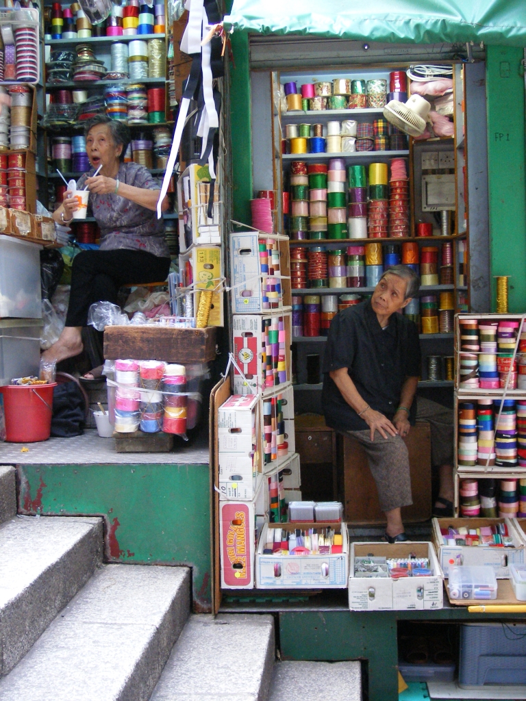照片描述:一次又一次, 不厌其烦地执行"拉"这个动作,即将失传的曬麵线手艺,在老妇熟稔的操作下形成一张张硕长的麵线床......几年以後,还有机会可以看得到吗?
