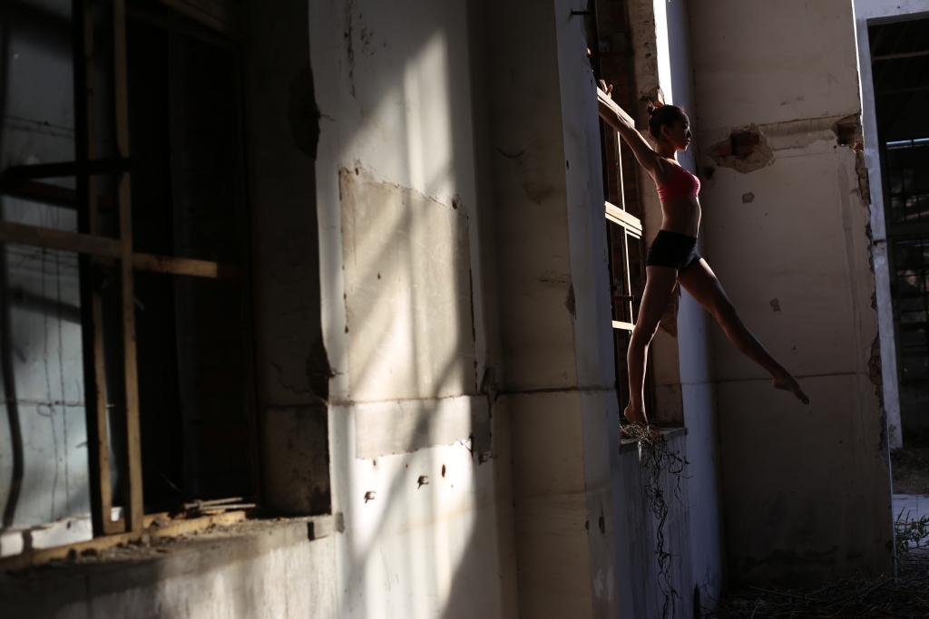 照片描述:光线照在她的身体上,勾勒出一个女性舞者美丽的线条。