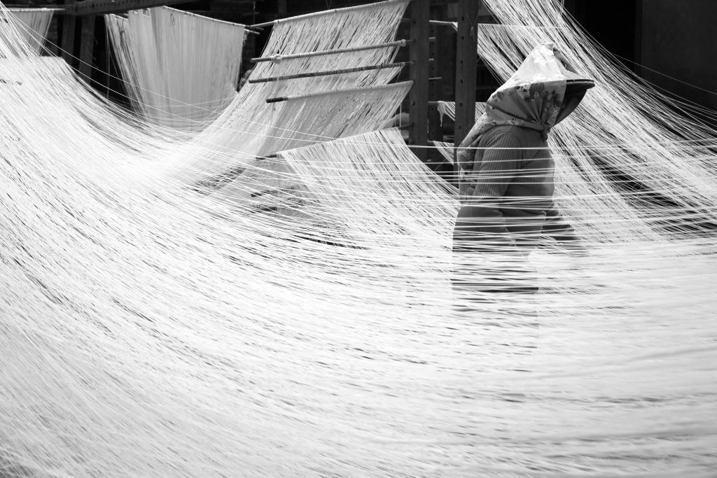 照片标题:《曬麵线的妇女》