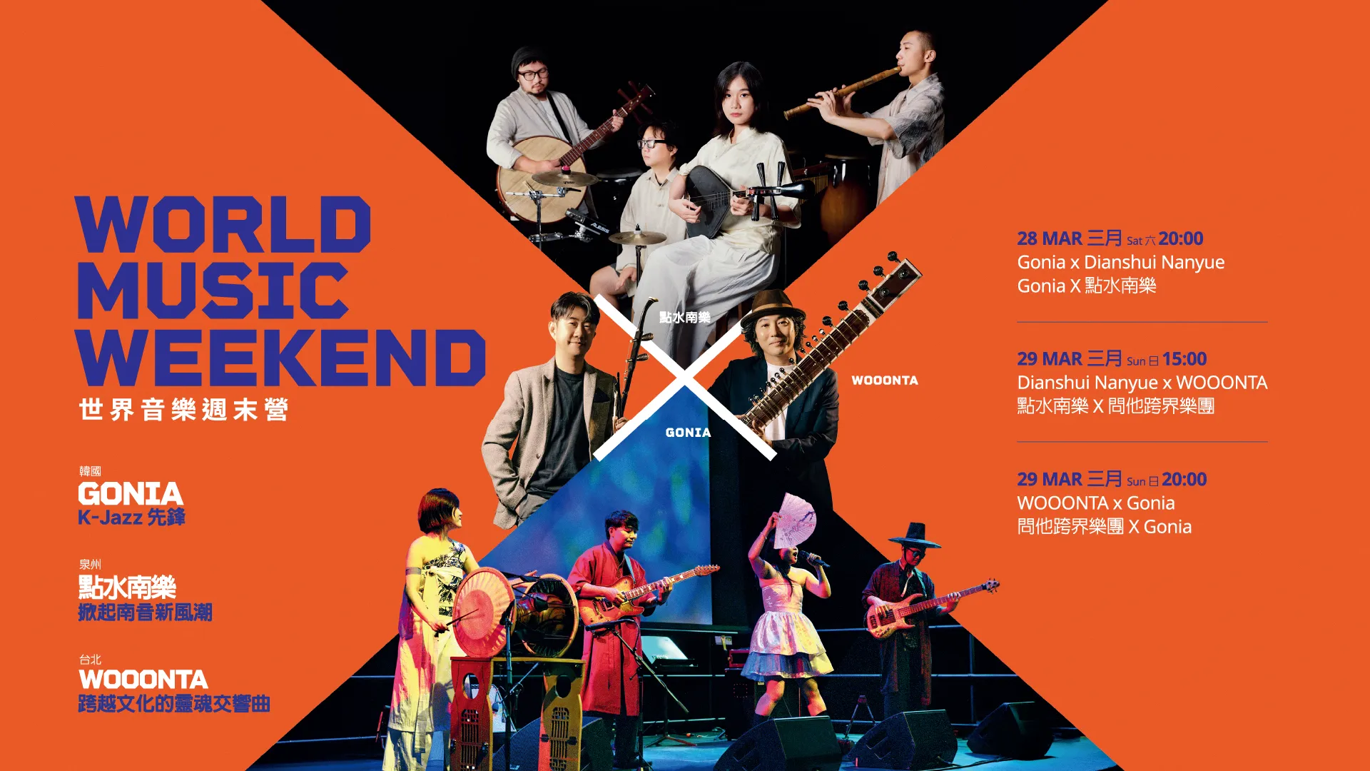 世界音樂週末營:Gonia X 點水南樂20:00演出長約1小時35分鐘,包括一節中場休息