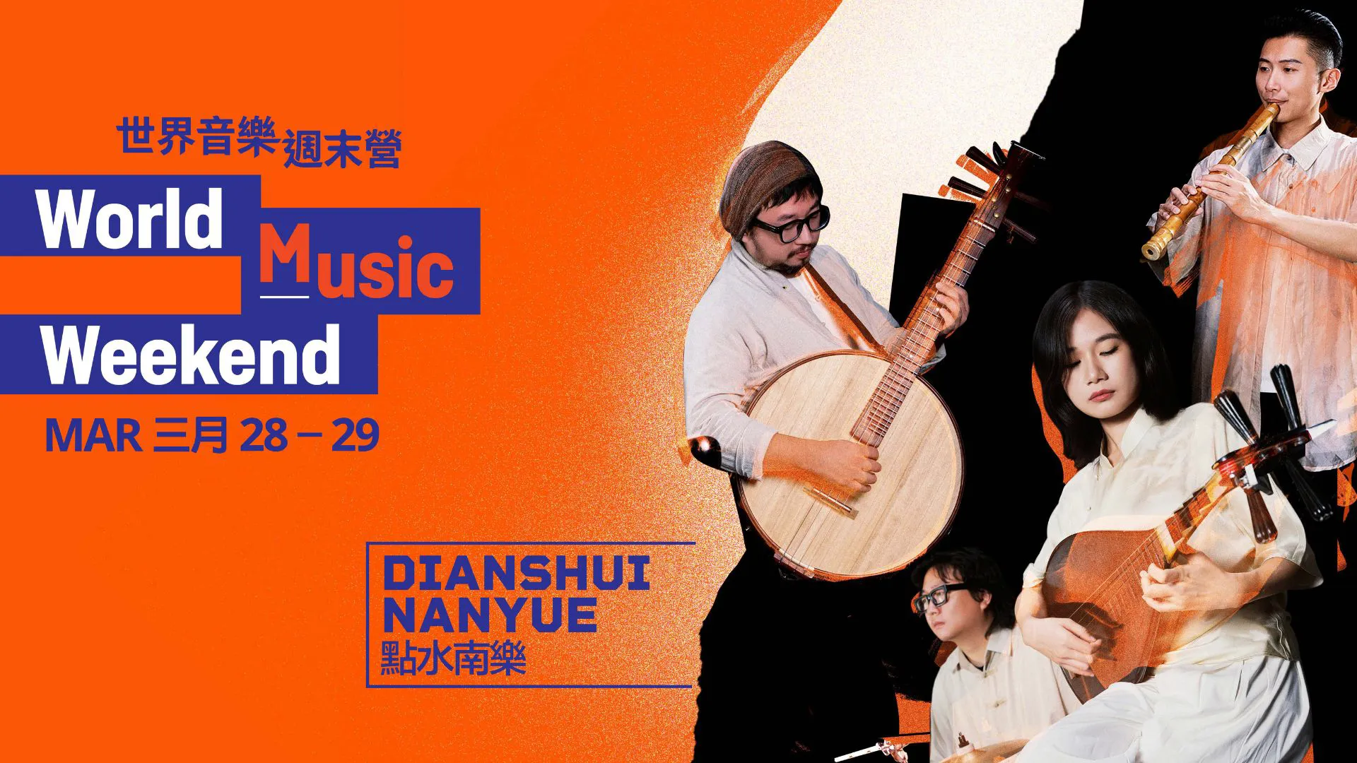 世界音樂週末營:點水南樂 X 問他跨界樂團15:00演出長約1小時35分鐘,包括一節中場休息