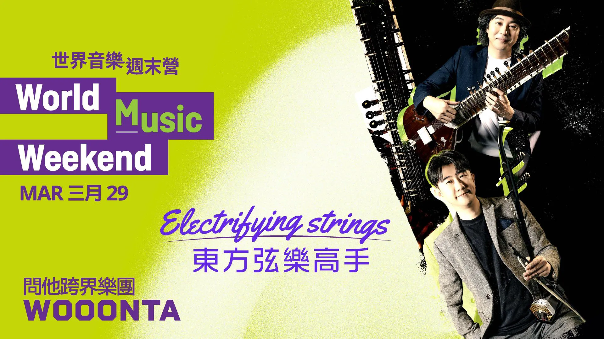 世界音樂週末營: 問他跨界樂團 X Gonia20:00演出長約1小時35分鐘,包括一節中場休息